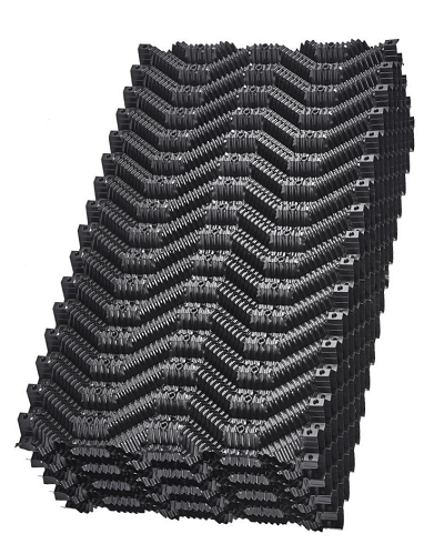 該填料結(jié)構(gòu)設(shè)計合理,親水面積大,熱力、阻力綜合性能好,水膜分布均勻,通風阻力小,承載能力強,單位體積輕,冷卻效果好等特點,主要用于工業(yè)逆流冷卻塔,電廠雙曲線水泥冷卻塔,適應溫度68℃~零下35℃,阻燃性能好,氧指數(shù)大于等于40℃.