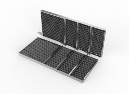 噴水泵向銅管上噴灑大量水。由于上部相對(duì)靠近風(fēng)扇的位置,為了防止一些水被風(fēng)扇吸出機(jī)器,需要集水器阻塞排氣系統(tǒng)以排出噴霧水和熱蒸汽。走;弧形PVC高效脫水機(jī)用于確保高效通風(fēng),而噴霧水的漂浮率小于0.001%,可以使設(shè)備成為漂浮水敏感區(qū)域的一部分。